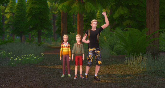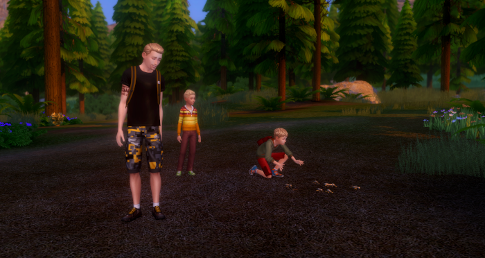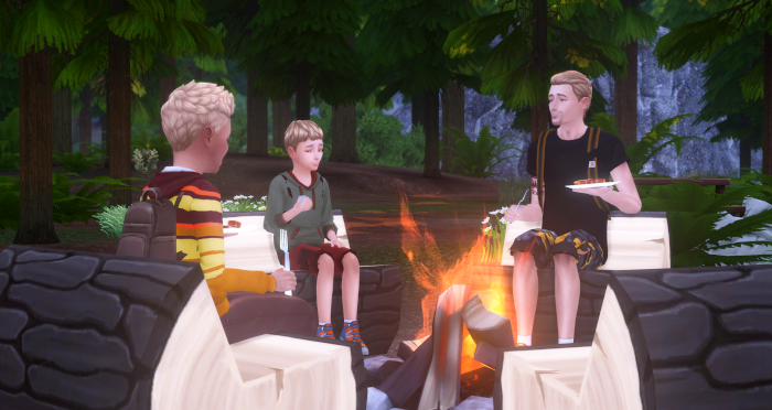 “Woot! A picnic spot. There’s a grill! You boys hungry? I’m starving!”