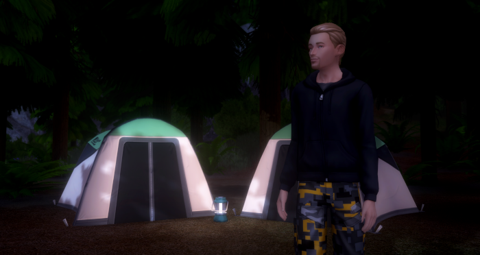 The sunlight faded faster under the tree canopy. It was time to make camp for the night before the darkness of the forest made the task difficult. Jordan found a flat spot for their tents.