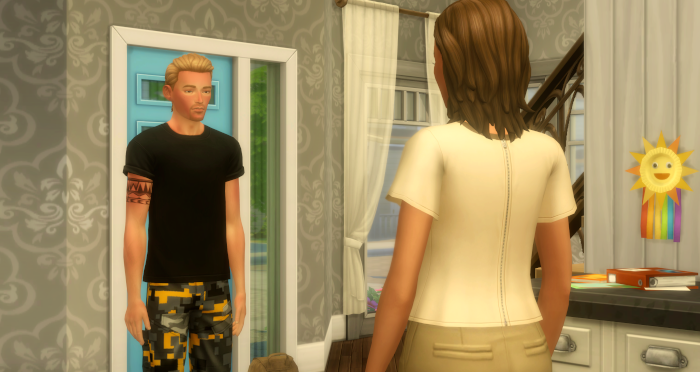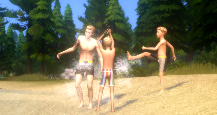 “Oh, why are you wet?” She didn’t wait for them to answer. “And you smell like campfire. Still? Were there no showers? Hugs later. Get straight in the shower. Don’t sit anywhere! Go on, straight upstairs!”